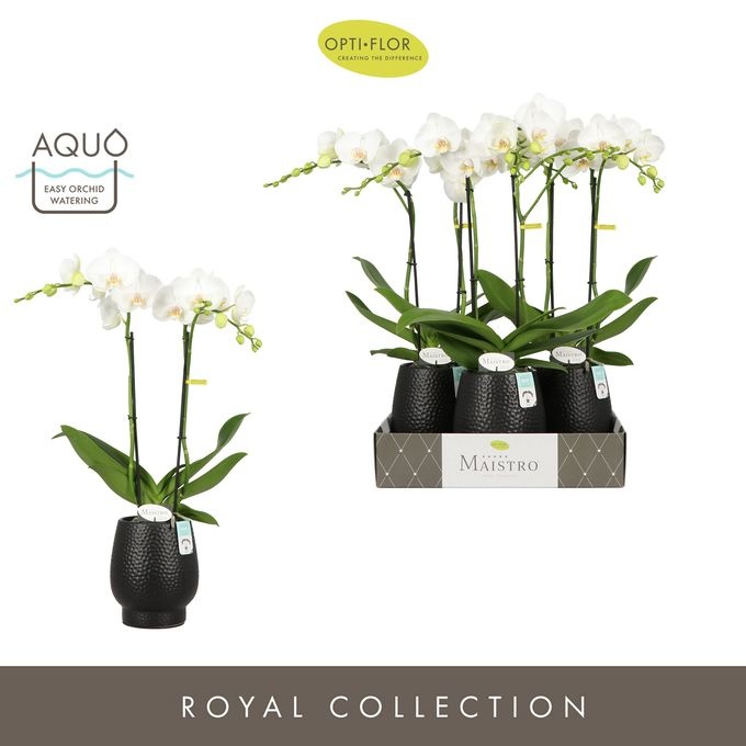 Open in Floriday Marketing concept Maistro Care: Location Be careful with full sun Care: Temperature max 25 °C min 15 °C Potting material cultivation pot plastic Pot size 12 cm Min plant height including pot 50 cm Maturity stage 1-2 Min number of flowers/inflorescences pot 18 Minimum number of branches per plant 2 Transport height 85 cm Less to branches pr inflorescence unbranched Weight (average) 700 gram Packaging method potweb Pot shape with water tank Pot color black Repotting potting material ceramics Country of origin Netherlands Quality group A1 Producer groups Opti-flor