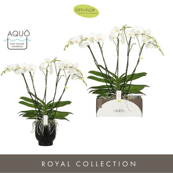 Open in Floriday Marketing concept Theatre Care: Location Be careful with full sun Care: Temperature max 25 °C min 15 °C Potting material cultivation pot plastic Pot size 17 cm Min plant height including pot 85 cm Maturity stage 1-2 Min number of flowers/inflorescences pot 35 Minimum number of branches per plant 5 Transport height 100 cm Less to branches pr inflorescence Interlocking Weight (average) 3000 gram Pot shape with water tank Pot color black Repotting potting material ceramics Country of origin Netherlands Quality group A1 Producer groups Opti-flor