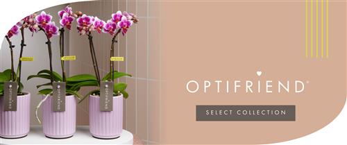 Optifriend is verkrijgbaar in een rijk kleurenpalet en heeft een compacte vorm met een overvloed aan onderscheidende bloemen.