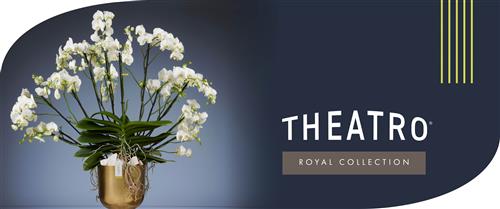 Theatro heeft een opvallende structuur met vele lagen bladeren, bekroond met een waaier vol prachtige bloemen!