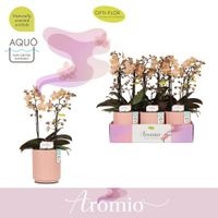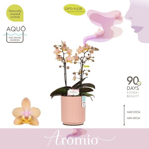 Openen in Floriday Marketingconcept Aromio Verzorging: Standplaats pas op met volle zon Verzorging: Temperatuur max 25 °C min 15 °C Potmateriaal kweekpot kunststof Potmaat 12 cm Min planthoogte inclusief pot 35 cm Rijpheidsstadium 1-2 Min aantal bloemen/bloeiwijzen pot 20 Minimum aantal takken per plant 2 Transporthoogte 55 cm Min aant vertakkingen pr bloeiwijze vertakt Gewicht (gemiddeld) 500 gram Minimum bloemdiameter 5 cm Verpakkingswijze potweb Potvorm met waterreservoir Potkleur zalm Potmateriaal ompot keramiek Land van herkomst Nederland Overige informatie planten geurend Kwaliteitsgroep A1 Themadagen Moederdag Producentengroepen Opti-flor