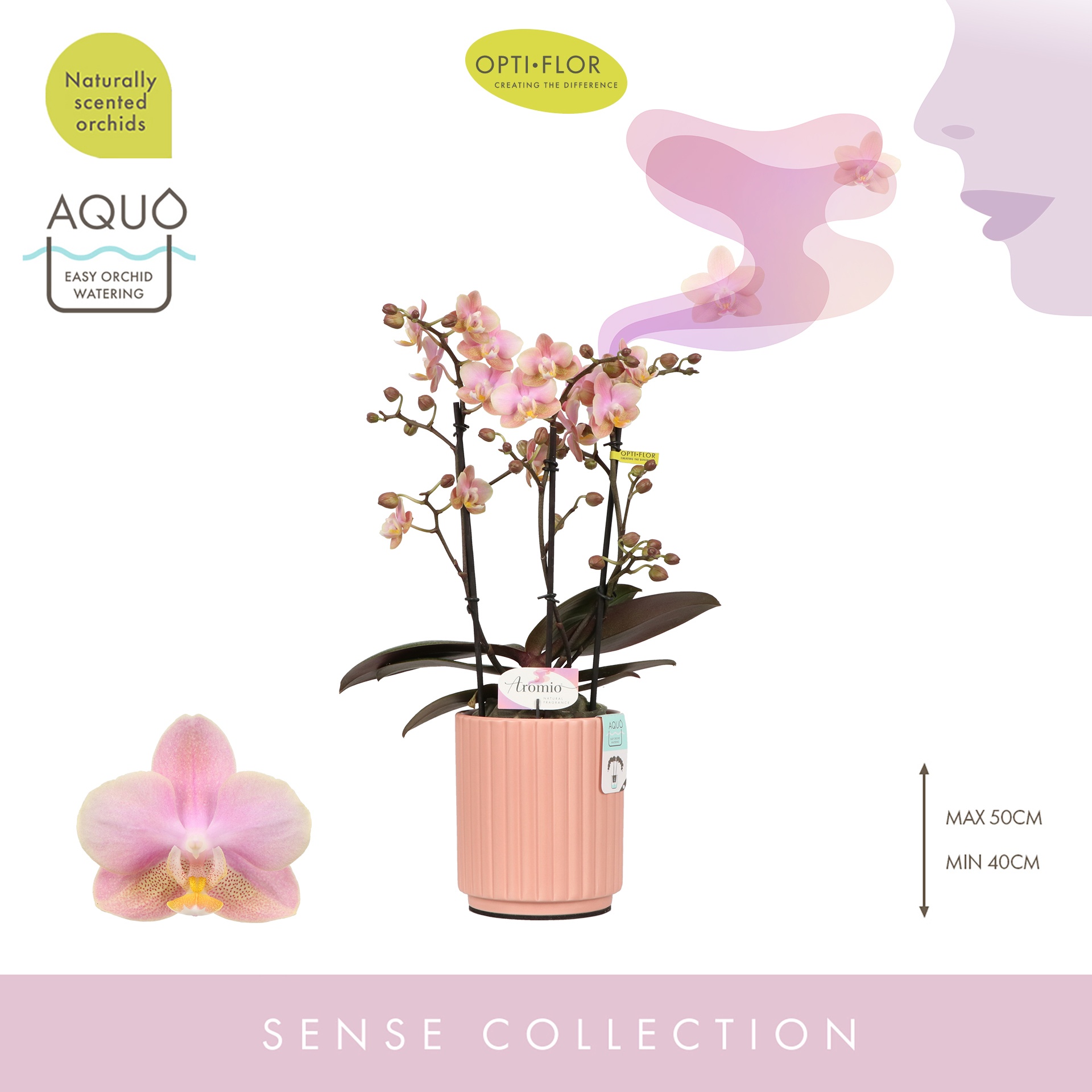 Openen in Floriday Marketingconcept Aromio Verzorging: Standplaats pas op met volle zon Verzorging: Temperatuur max 25 °C min 15 °C Potmateriaal kweekpot kunststof Potmaat 12 cm Min planthoogte inclusief pot 35 cm Rijpheidsstadium 1-2 Min aantal bloemen/bloeiwijzen pot 25 Minimum aantal takken per plant 3 Transporthoogte 55 cm Min aant vertakkingen pr bloeiwijze vertakt Gewicht (gemiddeld) 500 gram Minimum bloemdiameter 4,5 cm Verpakkingswijze potweb Potvorm met waterreservoir Potkleur zalm Potmateriaal ompot keramiek Land van herkomst Nederland Overige informatie planten geurend Kwaliteitsgroep A1 Themadagen Moederdag Producentengroepen Opti-flor