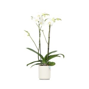 Openen in Floriday Verzorging: Standplaats pas op met volle zon Verzorging: Temperatuur max 25 °C min 15 °C Potmateriaal kweekpot kunststof Potmaat 15 cm Min planthoogte inclusief pot 70 cm Rijpheidsstadium 1-2 Min aantal bloemen/bloeiwijzen pot 14 Minimum aantal takken per plant 2 Transporthoogte 80 cm Min aant vertakkingen pr bloeiwijze onvertakt Potvorm met waterreservoir Potkleur wit Potmateriaal ompot keramiek Land van herkomst Nederland Kwaliteitsgroep A1 Producentengroepen Opti-flor