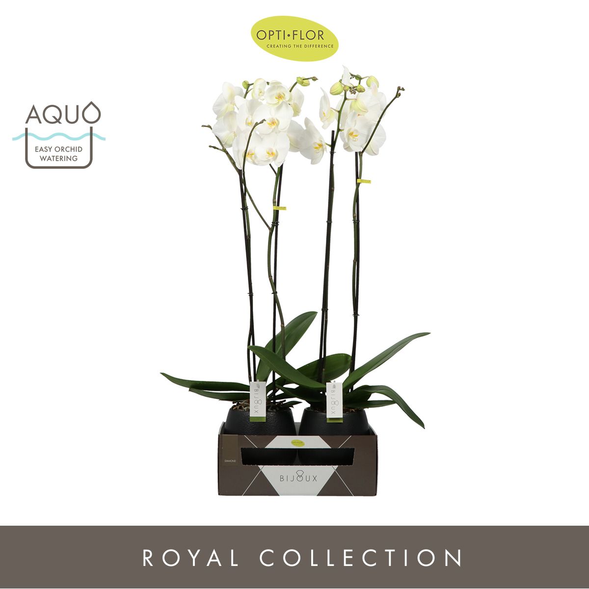 Openen in Floriday Marketingconcept Bijoux Verzorging: Standplaats pas op met volle zon Verzorging: Temperatuur max 25 °C min 15 °C Potmateriaal kweekpot kunststof Potmaat 15 cm Min planthoogte inclusief pot 80 cm Rijpheidsstadium 1-2 Min aantal bloemen/bloeiwijzen pot 14 Minimum aantal takken per plant 2 Transporthoogte 110 cm Min aant vertakkingen pr bloeiwijze onvertakt Gewicht (gemiddeld) 3000 gram Potvorm met waterreservoir Potkleur wit Potmateriaal ompot keramiek Land van herkomst Nederland Kwaliteitsgroep A1 Themadagen Moederdag Producentengroepen Opti-flor