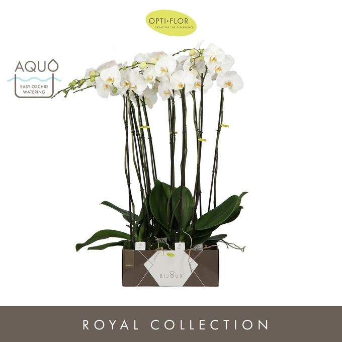 Openen in Floriday Marketingconcept Bijoux Verzorging: Standplaats pas op met volle zon Verzorging: Temperatuur max 25 °C min 15 °C Potmateriaal kweekpot kunststof Potmaat 15 cm Min planthoogte inclusief pot 100 cm Rijpheidsstadium 1-2 Min aantal bloemen/bloeiwijzen pot 24 Minimum aantal takken per plant 3 Transporthoogte 120 cm Min aant vertakkingen pr bloeiwijze onvertakt Gewicht (gemiddeld) 3000 gram Potvorm met waterreservoir Potkleur wit Potmateriaal ompot keramiek Land van herkomst Nederland Kwaliteitsgroep A1 Themadagen Moederdag Producentengroepen Opti-flor