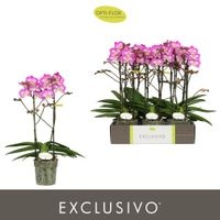 Openen in Floriday Marketingconcept Exclusivo Verzorging: Standplaats pas op met volle zon Verzorging: Temperatuur max 25 °C min 15 °C Potmateriaal kweekpot kunststof Potmaat 12 cm Min planthoogte inclusief pot 45 cm Rijpheidsstadium 1-2 Min aantal bloemen/bloeiwijzen pot 18 Minimum aantal takken per plant 2 Transporthoogte 55 cm Min aant vertakkingen pr bloeiwijze vertakt Gewicht (gemiddeld) 500 gram Minimum bloemdiameter 6,5 cm Verpakkingswijze potweb Potvorm kweekpot Land van herkomst Nederland Kwaliteitsgroep A1 Themadagen Moederdag Producentengroepen Opti-flor