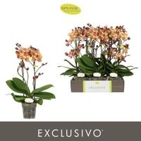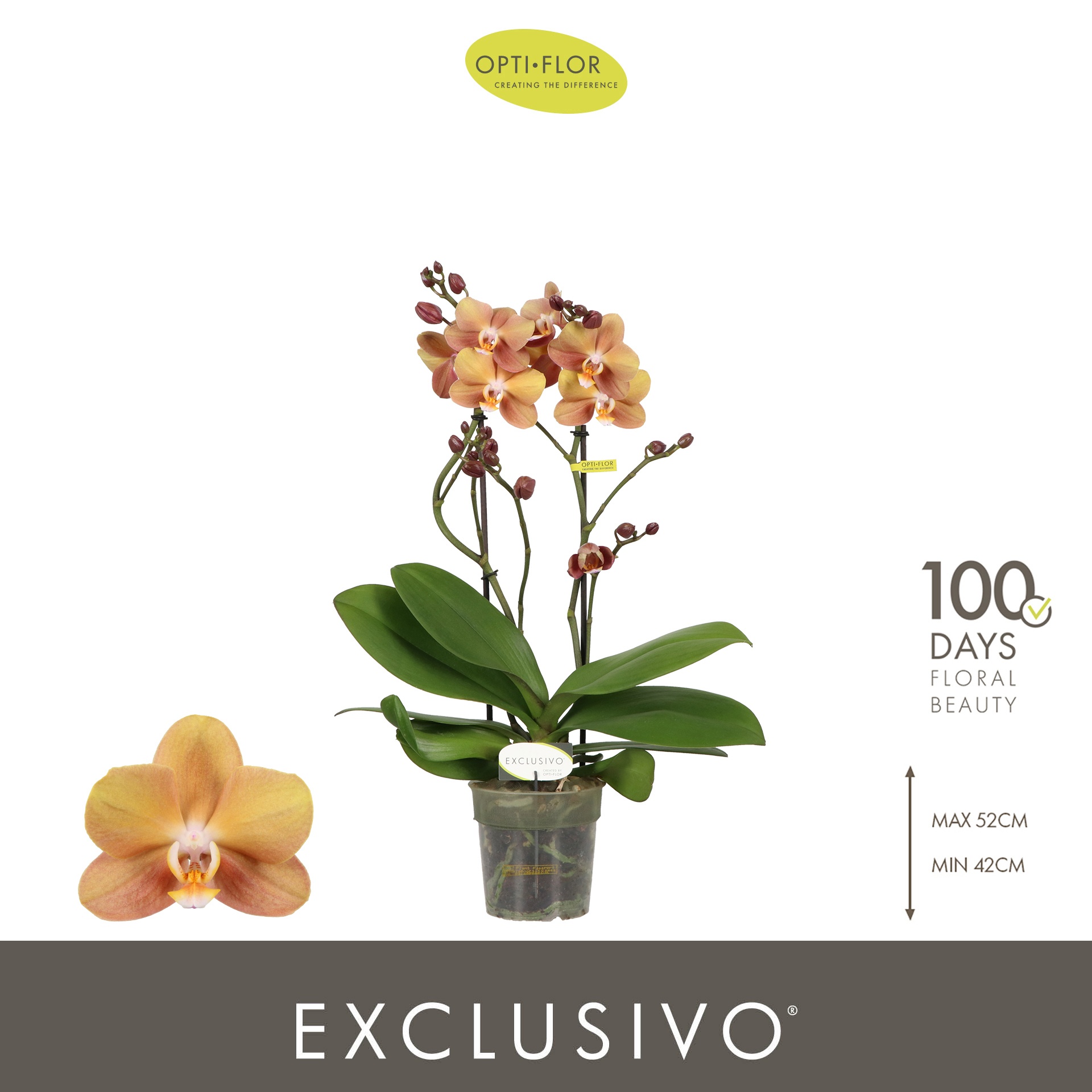 Openen in Floriday Marketingconcept Exclusivo Verzorging: Standplaats pas op met volle zon Verzorging: Temperatuur max 25 °C min 15 °C Potmateriaal kweekpot kunststof Potmaat 12 cm Min planthoogte inclusief pot 45 cm Rijpheidsstadium 1-2 Min aantal bloemen/bloeiwijzen pot 18 Minimum aantal takken per plant 2 Transporthoogte 55 cm Min aant vertakkingen pr bloeiwijze vertakt Gewicht (gemiddeld) 500 gram Minimum bloemdiameter 8 cm Verpakkingswijze potweb Potvorm kweekpot Land van herkomst Nederland Kwaliteitsgroep A1 Themadagen Moederdag Producentengroepen Opti-flor