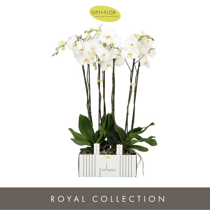 Openen in Floriday Marketingconcept Fortuno Verzorging: Standplaats pas op met volle zon Verzorging: Temperatuur max 25 °C min 15 °C Potmateriaal kweekpot kunststof Potmaat 17 cm Min planthoogte inclusief pot 110 cm Rijpheidsstadium 1-2 Min aantal bloemen/bloeiwijzen pot 24 Minimum aantal takken per plant 4 Transporthoogte 125 cm Min aant vertakkingen pr bloeiwijze onvertakt Gewicht (gemiddeld) 3000 gram Potvorm sierpot Potkleur antraciet Potmateriaal ompot keramiek Land van herkomst Nederland Kwaliteitsgroep A1 Producentengroepen Opti-flor