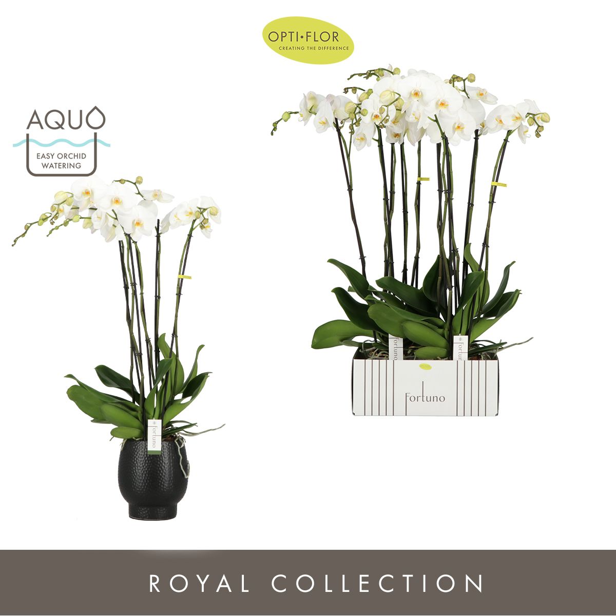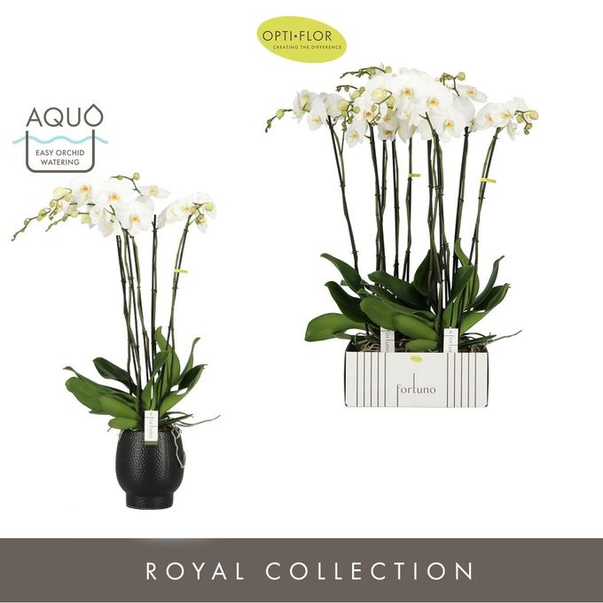 Openen in Floriday Marketingconcept Fortuno Verzorging: Standplaats pas op met volle zon Verzorging: Temperatuur max 25 °C min 15 °C Potmateriaal kweekpot kunststof Potmaat 17 cm Min planthoogte inclusief pot 110 cm Rijpheidsstadium 1-2 Min aantal bloemen/bloeiwijzen pot 30 Minimum aantal takken per plant 5 Transporthoogte 125 cm Min aant vertakkingen pr bloeiwijze onvertakt Gewicht (gemiddeld) 3000 gram Potvorm met waterreservoir Potkleur zwart Potmateriaal ompot keramiek Land van herkomst Nederland Kwaliteitsgroep A1 Producentengroepen Opti-flor