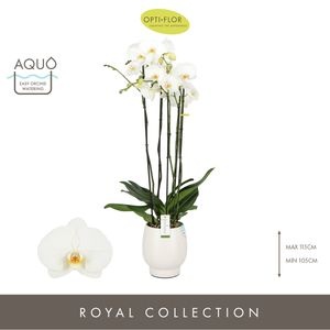 Openen in Floriday Marketingconcept Fortuno Verzorging: Standplaats pas op met volle zon Verzorging: Temperatuur max 25 °C min 15 °C Potmateriaal kweekpot kunststof Potmaat 17 cm Min planthoogte inclusief pot 110 cm Rijpheidsstadium 1-2 Min aantal bloemen/bloeiwijzen pot 30 Minimum aantal takken per plant 5 Transporthoogte 125 cm Min aant vertakkingen pr bloeiwijze onvertakt Gewicht (gemiddeld) 3000 gram Potvorm met waterreservoir Potkleur wit Potmateriaal ompot keramiek Land van herkomst Nederland Kwaliteitsgroep A1 Themadagen Moederdag Producentengroepen Opti-flor