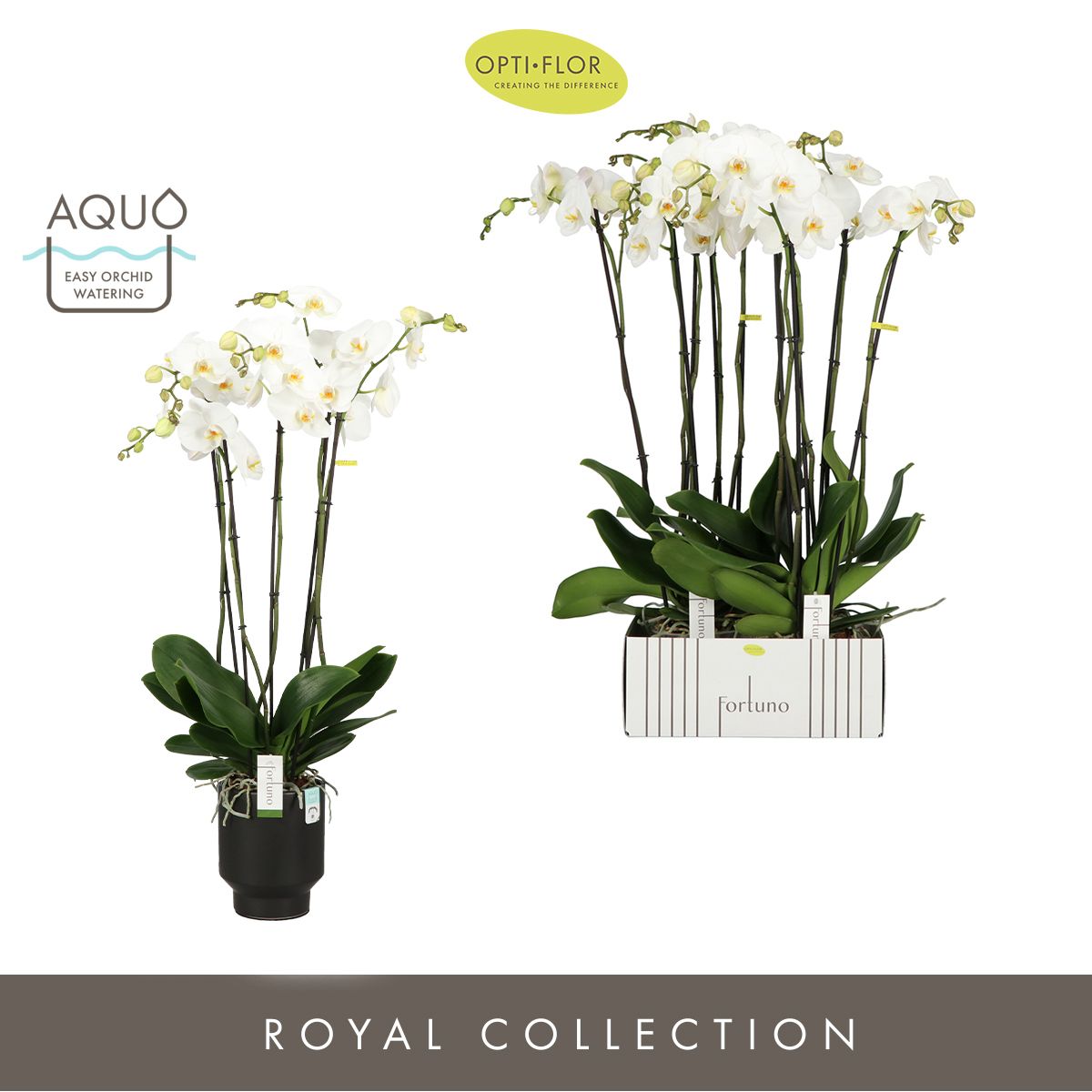 Openen in Floriday Marketingconcept Fortuno Verzorging: Standplaats pas op met volle zon Verzorging: Temperatuur max 25 °C min 15 °C Potmateriaal kweekpot kunststof Potmaat 17 cm Min planthoogte inclusief pot 110 cm Rijpheidsstadium 1-2 Min aantal bloemen/bloeiwijzen pot 30 Minimum aantal takken per plant 5 Transporthoogte 125 cm Min aant vertakkingen pr bloeiwijze onvertakt Gewicht (gemiddeld) 3000 gram Potvorm met waterreservoir Potkleur bruin Potmateriaal ompot keramiek Land van herkomst Nederland Kwaliteitsgroep A1 Producentengroepen Opti-flor