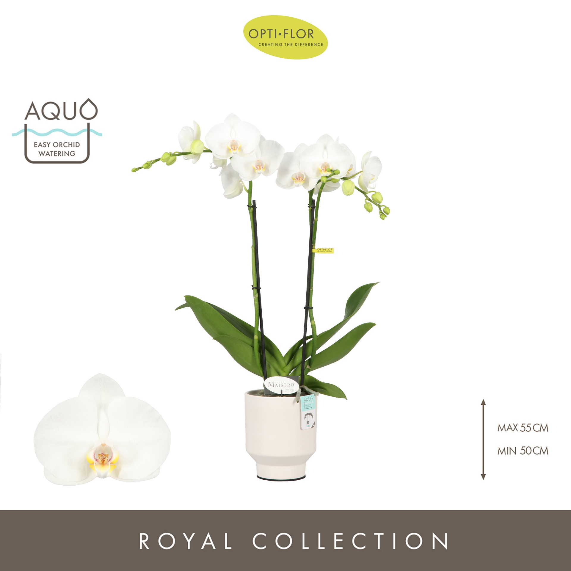 Openen in Floriday Marketingconcept Maistro Verzorging: Standplaats pas op met volle zon Verzorging: Temperatuur max 25 °C min 15 °C Potmateriaal kweekpot kunststof Potmaat 12 cm Min planthoogte inclusief pot 50 cm Rijpheidsstadium 1-2 Min aantal bloemen/bloeiwijzen pot 18 Minimum aantal takken per plant 2 Transporthoogte 75 cm Min aant vertakkingen pr bloeiwijze onvertakt Gewicht (gemiddeld) 700 gram Verpakkingswijze potweb Potvorm met waterreservoir Potkleur wit Potmateriaal ompot keramiek Land van herkomst Nederland Kwaliteitsgroep A1 Themadagen Valentijn Producentengroepen Opti-flor