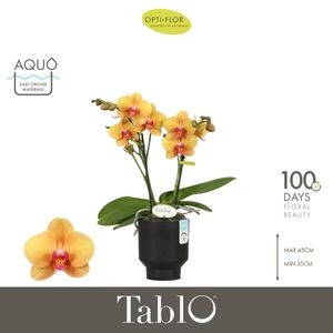 Openen in Floriday Marketingconcept Tablo Verzorging: Standplaats pas op met volle zon Verzorging: Temperatuur max 25 °C min 15 °C Potmateriaal kweekpot kunststof Potmaat 12 cm Min planthoogte inclusief pot 40 cm Rijpheidsstadium 2-3 Min aantal bloemen/bloeiwijzen pot 25 Minimum aantal takken per plant 2 Transporthoogte 55 cm Min aant vertakkingen pr bloeiwijze vertakt Verpakkingswijze potweb Potvorm met waterreservoir Potkleur bruin Potmateriaal ompot keramiek Land van herkomst Nederland Kwaliteitsgroep A1 Producentengroepen Opti-flor