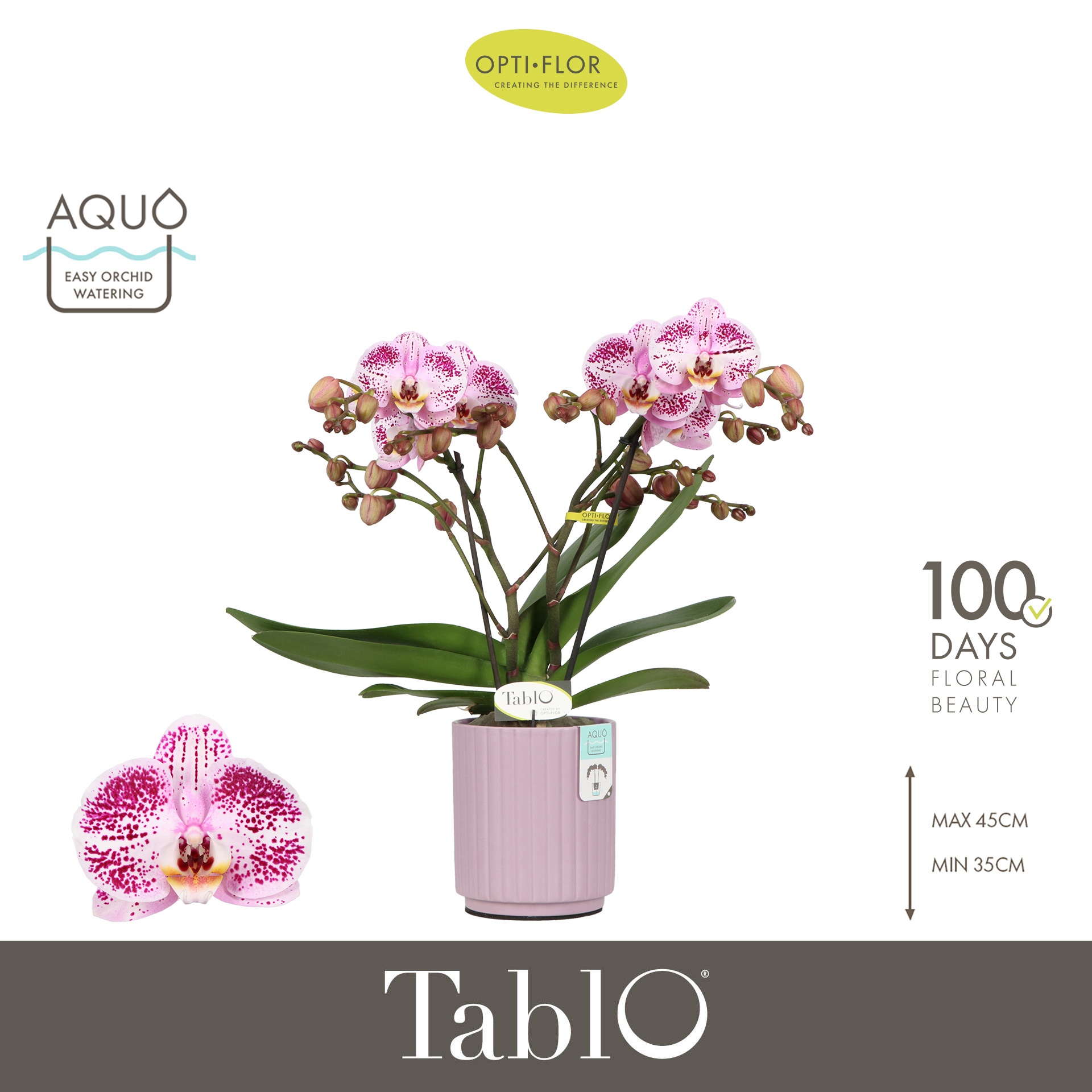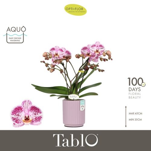 Openen in Floriday Marketingconcept Tablo Verzorging: Standplaats pas op met volle zon Verzorging: Temperatuur max 25 °C min 15 °C Potmateriaal kweekpot kunststof Potmaat 12 cm Min planthoogte inclusief pot 40 cm Rijpheidsstadium 2-3 Min aantal bloemen/bloeiwijzen pot 25 Minimum aantal takken per plant 2 Transporthoogte 55 cm Min aant vertakkingen pr bloeiwijze vertakt Verpakkingswijze potweb Potvorm met waterreservoir Potkleur paars Potmateriaal ompot keramiek Land van herkomst Nederland Kwaliteitsgroep A1 Themadagen Moederdag Producentengroepen Opti-flor