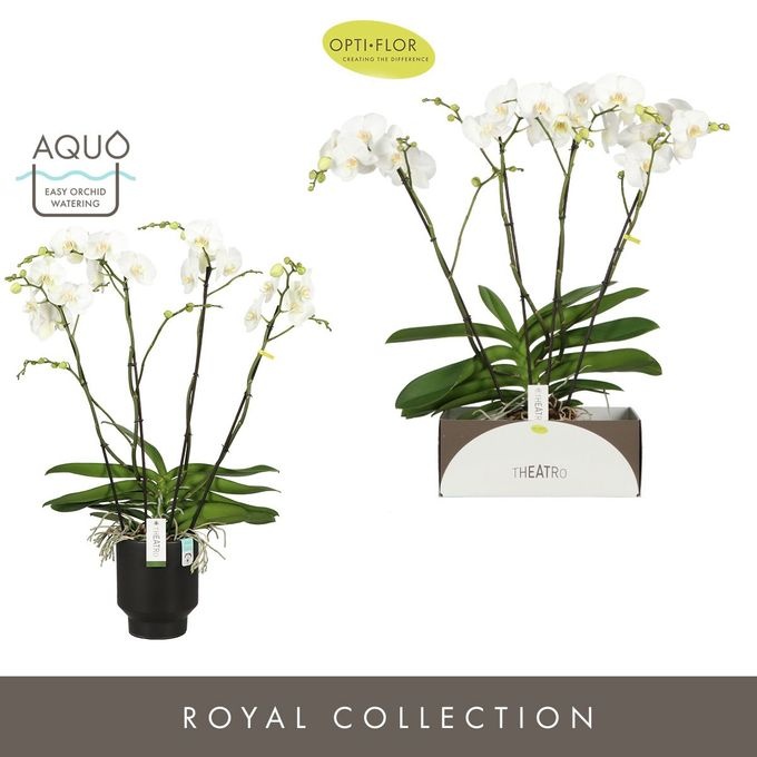 Openen in Floriday Marketingconcept Theatro Verzorging: Standplaats pas op met volle zon Verzorging: Temperatuur max 25 °C min 15 °C Potmateriaal kweekpot kunststof Potmaat 17 cm Min planthoogte inclusief pot 85 cm Rijpheidsstadium 1-2 Min aantal bloemen/bloeiwijzen pot 30 Minimum aantal takken per plant 4 Transporthoogte 100 cm Min aant vertakkingen pr bloeiwijze vertakt Gewicht (gemiddeld) 3000 gram Potvorm met waterreservoir Potkleur bruin Potmateriaal ompot keramiek Land van herkomst Nederland Kwaliteitsgroep A1 Producentengroepen Opti-flor