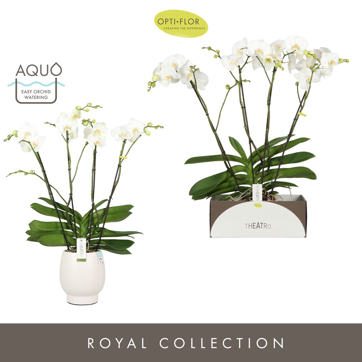 Openen in Floriday Marketingconcept Theatro Verzorging: Standplaats pas op met volle zon Verzorging: Temperatuur max 25 °C min 15 °C Potmateriaal kweekpot kunststof Potmaat 17 cm Min planthoogte inclusief pot 85 cm Rijpheidsstadium 1-2 Min aantal bloemen/bloeiwijzen pot 30 Minimum aantal takken per plant 4 Transporthoogte 100 cm Min aant vertakkingen pr bloeiwijze vertakt Gewicht (gemiddeld) 3000 gram Potvorm met waterreservoir Potkleur wit Potmateriaal ompot keramiek Land van herkomst Nederland Kwaliteitsgroep A1 Themadagen Moederdag Producentengroepen Opti-flor
